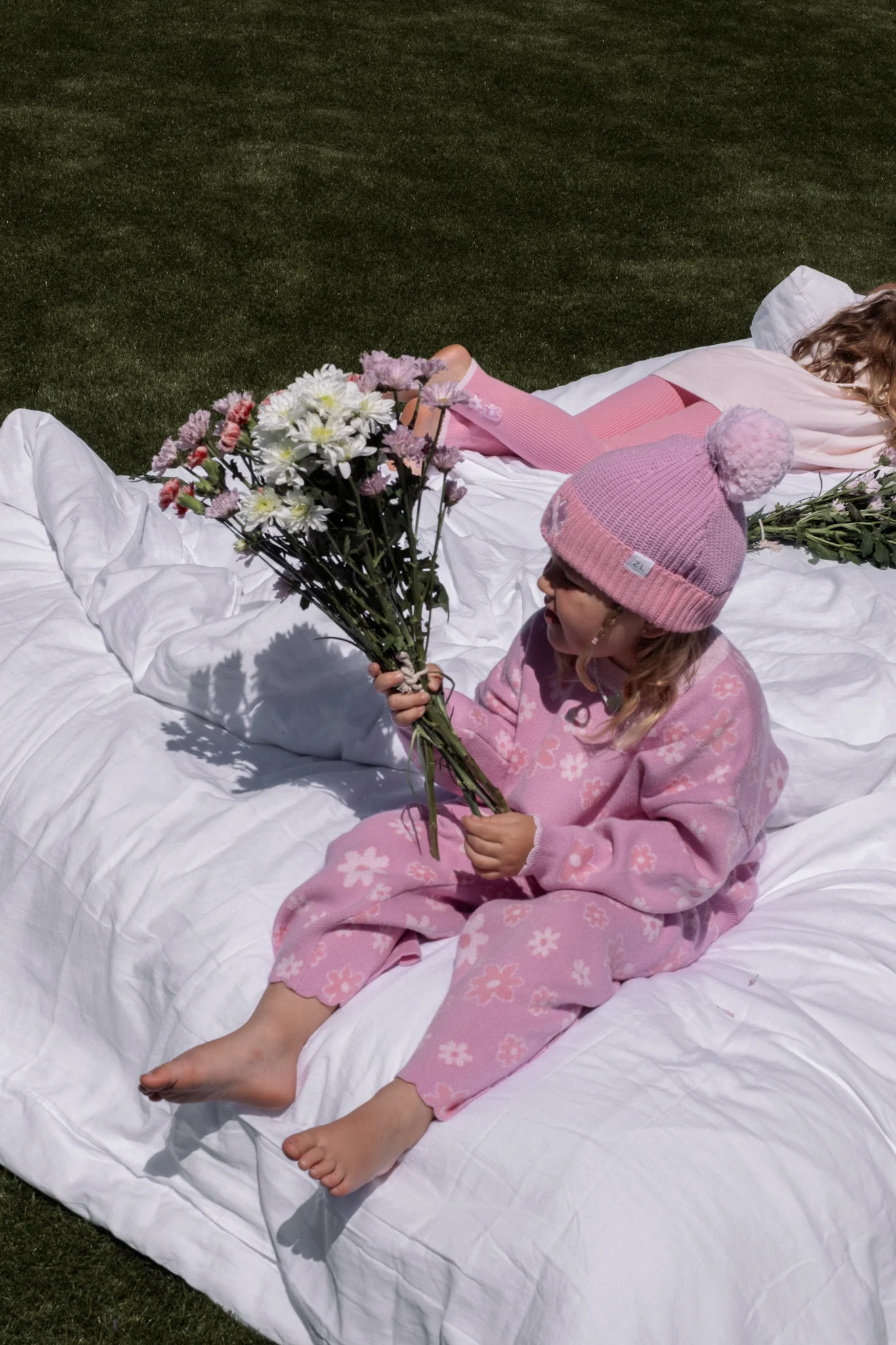 Original chunky knit beanie featuring an embroidered Milla flower to compliment our Milla, Lila + Sadie Collections.