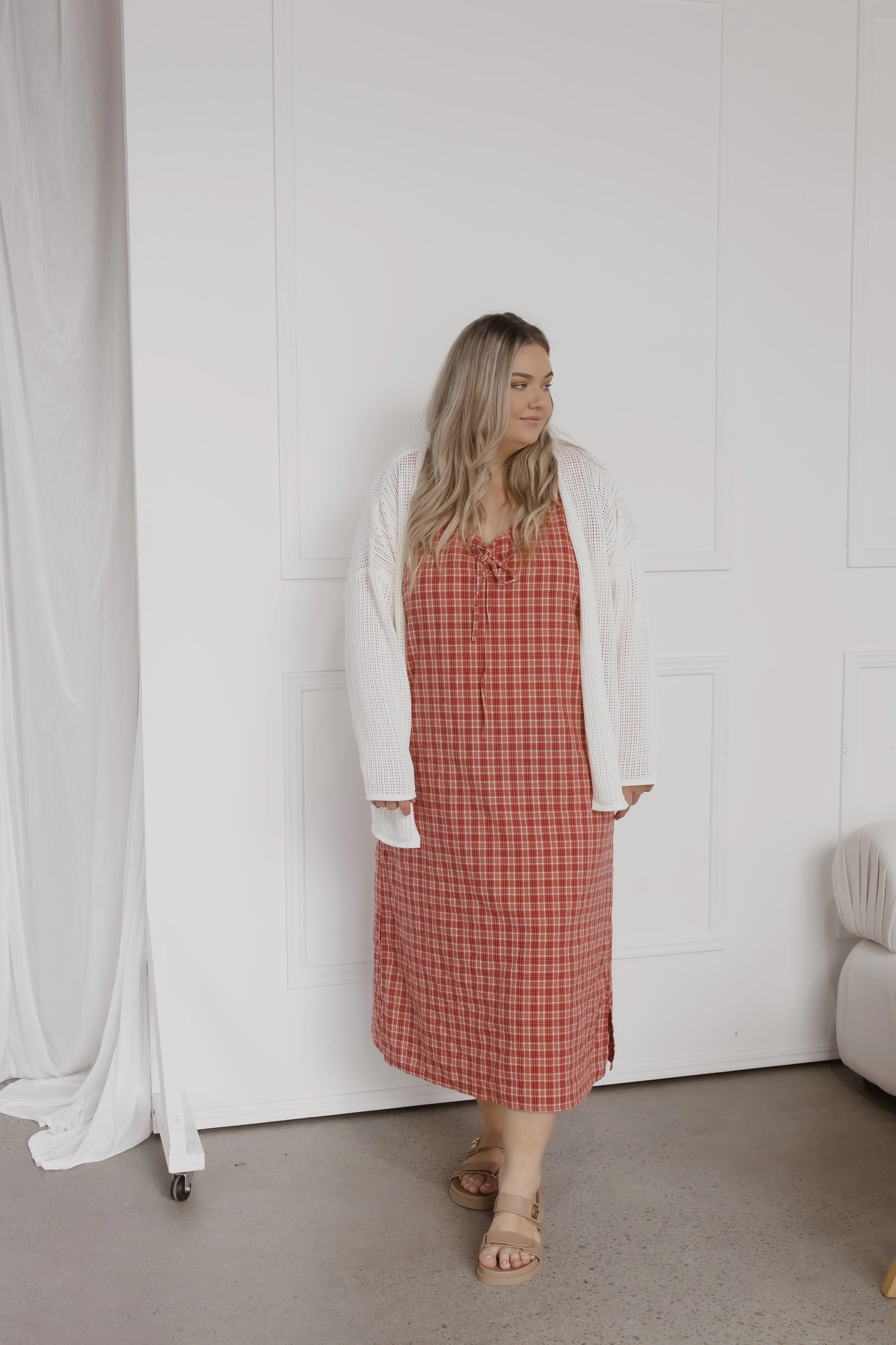 Short sleeve midi dress in our Agnes colour. Functional ties at chest to tighten neck line. Breastfeeding friendly with invisible zips on either side and on the back for easy on/off.