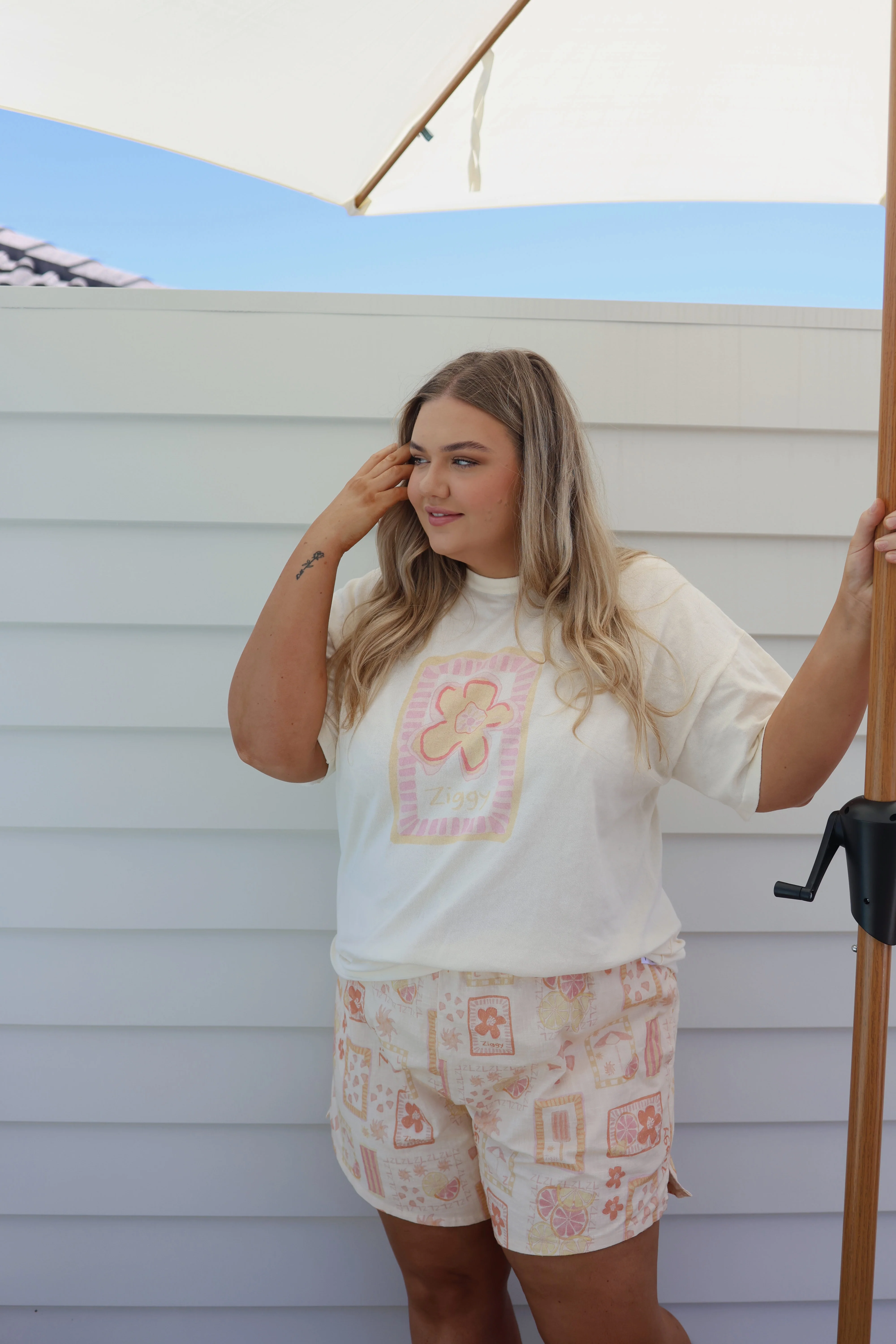 Women's cotton shorts featuring our Cali printed design. Functional drawstring and soft elastic waist for the perfect fit. Mix and match with items from our Women's Collection or match with your mini.Ā